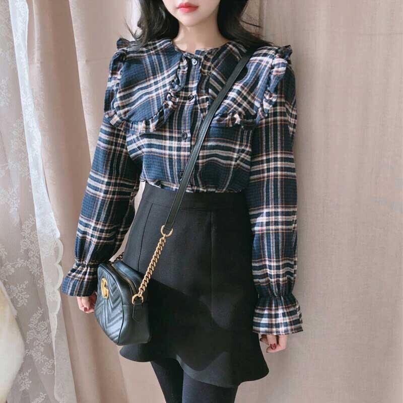 スタンダードカラー格子柄スリーブシャツ レトロ 左左右右2577829
