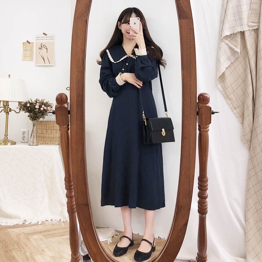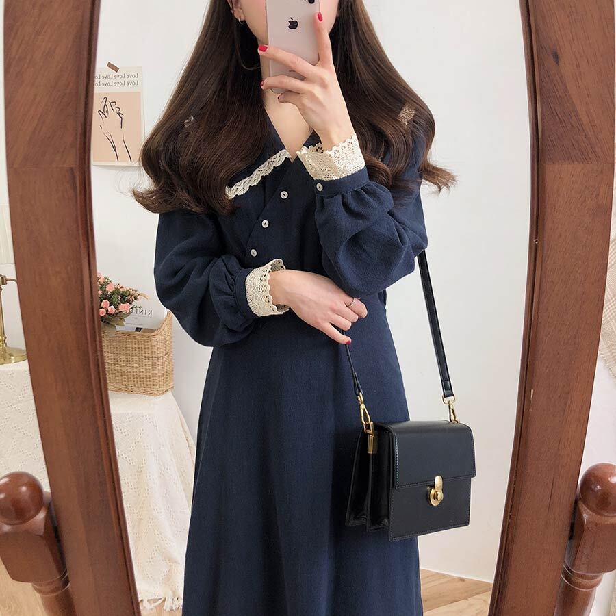 スプリングオータムスカート スタンダードロングカラードレス レトロ 春物 秋物 左左右右7888353