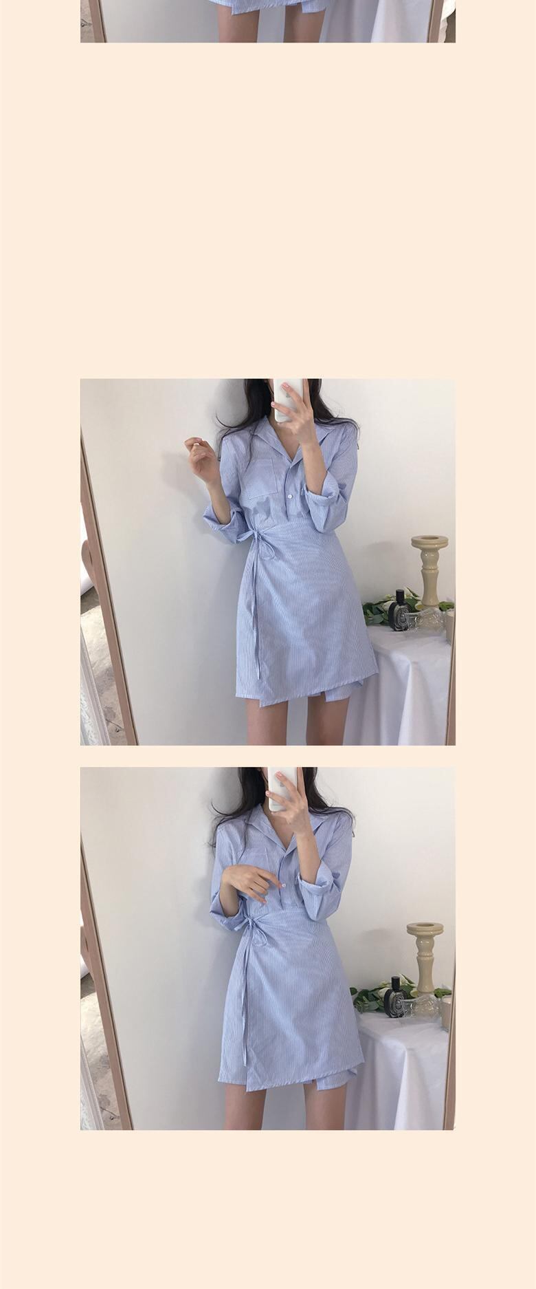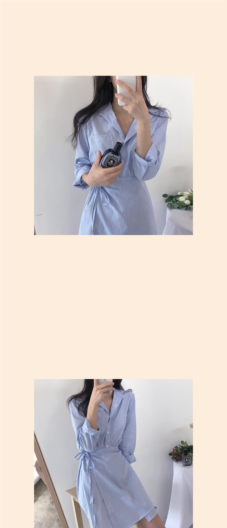 スプリングスカート シャツ 薄手ウェストワンピースストライプドレス 春物 フラワーデザイン 左左右右0149453