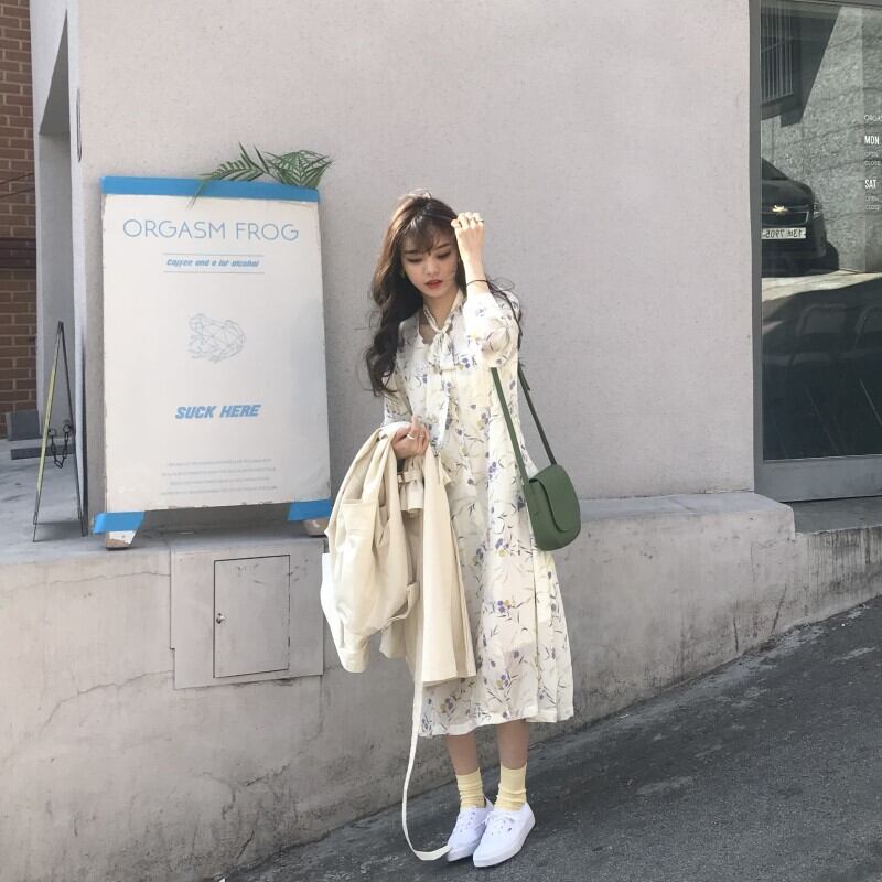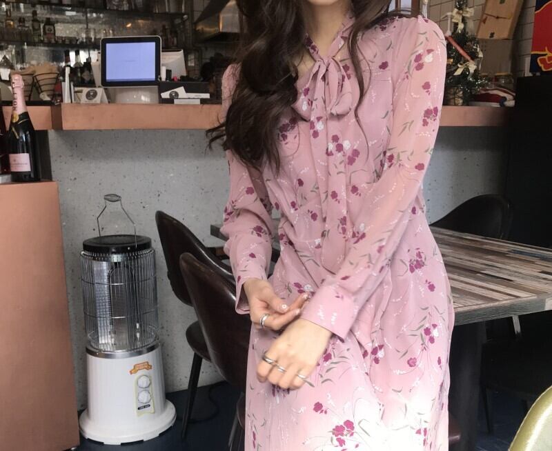 スカート スタンダードオータムウィンターロングフローラルシフォンドレス レトロ 秋物 冬物 花柄 フラワーデザイン 左左右右6078418