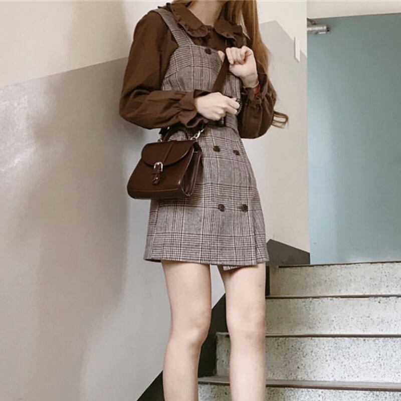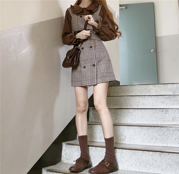 スタンダード格子柄ショートスカート ウェストドレス レディース レトロ 左左右右1752846