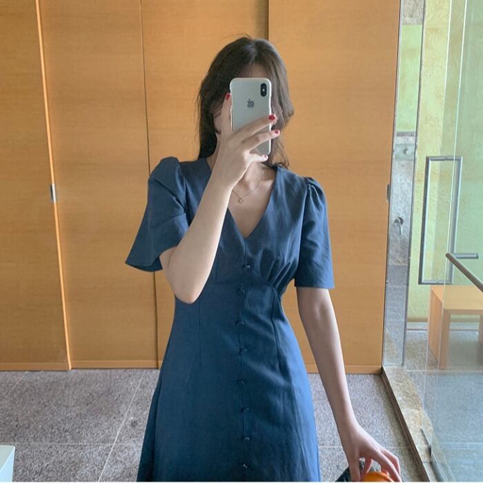 Vネックウェストロングスリーブドレス レディース レッド エレガント ICC_レディース3554558
