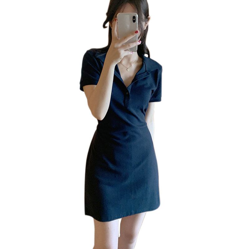 サマー薄手カラーウェストAラインスカート 半袖スリーブドレス ショート ハーフスリーブ 夏物 ICC_レディース1303313