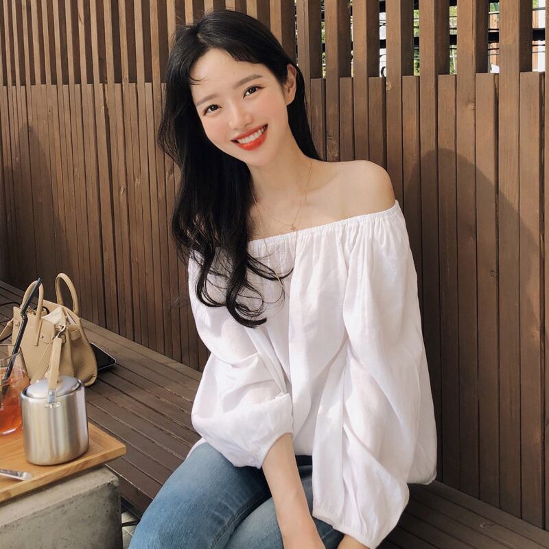 スタンダードホワイトトップス ストラップレスルーズシャツ レトロ 左左右右7555505