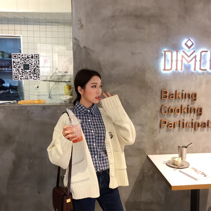 ルーズVネックスタイルセーター カーディガンレッドコート ICC_レディース5932201