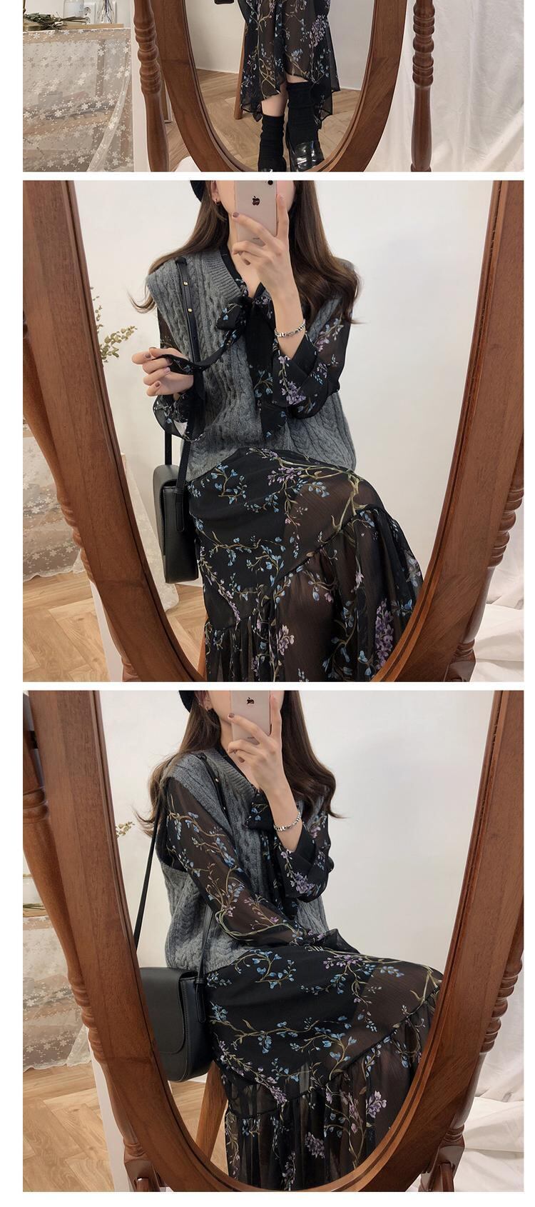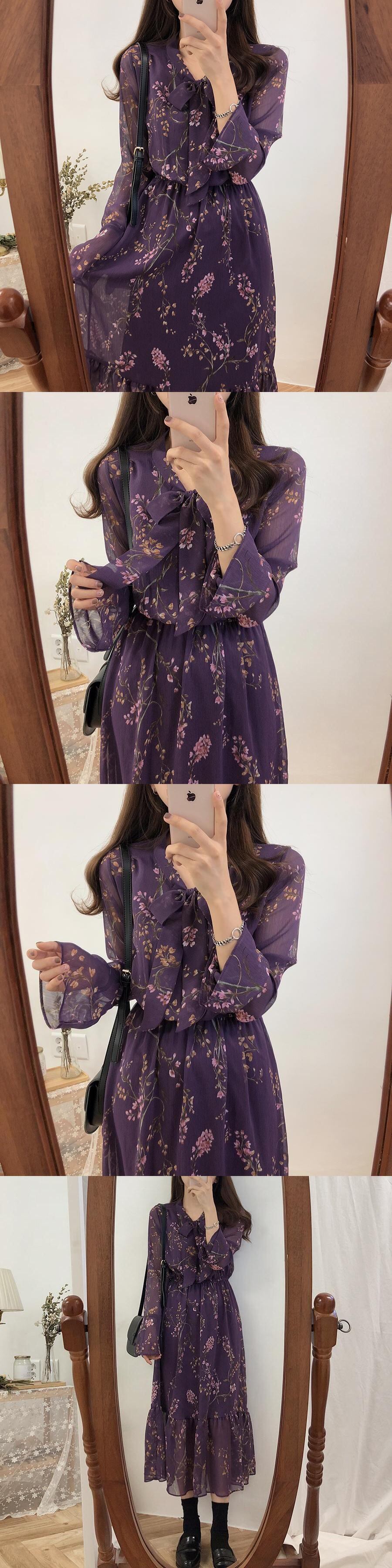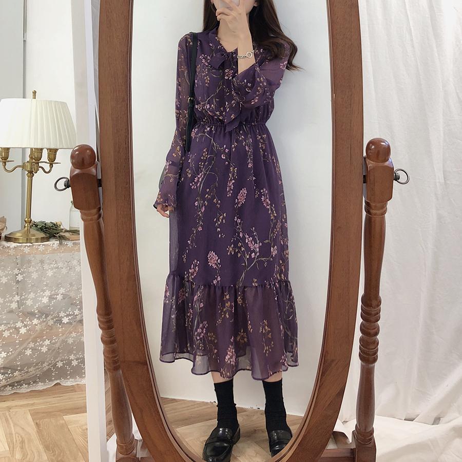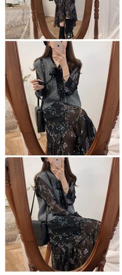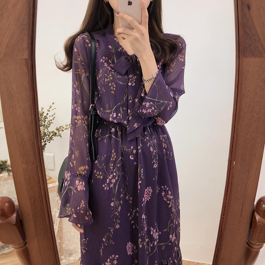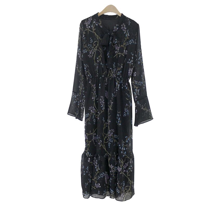 スプリングシフォンスタンダードロングスカート フローラルウェストドレス レトロ 春物 花柄 左左右右6155350