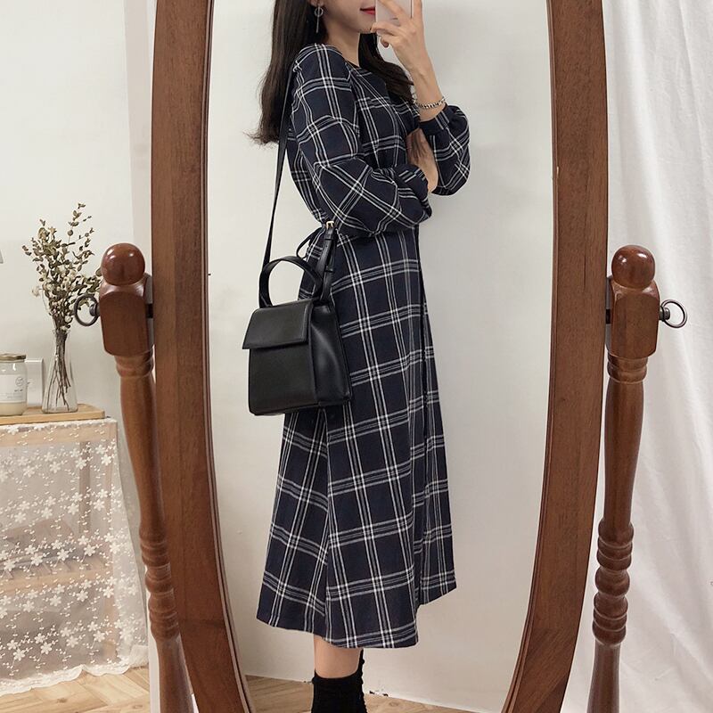 スタンダードスカート オータムウィンターロングウェストドレス レトロ 秋物 冬物 左左右右4045352