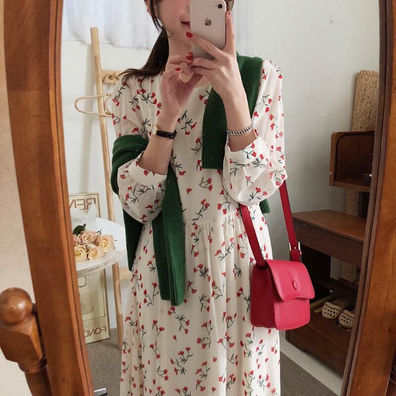 スカート オータムシフォンフローラルドレス 大人ガーリー スウィート キュート カジュアル 秋物 花柄 ICC_レディース2309493