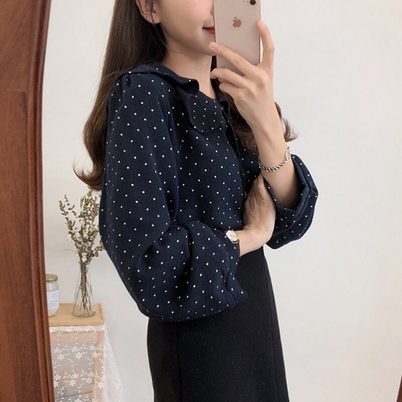 オータム水玉カラー長袖スリーブシャツ ルーズ ロング 秋物 ICC_レディース5013373