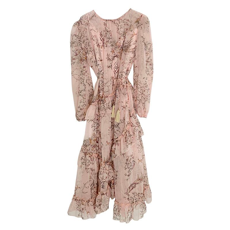 カラーラウンドネックハイウェストウェスト薄手ドレス レディース エレガント Oネック ICC_レディース9540678