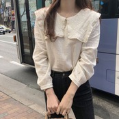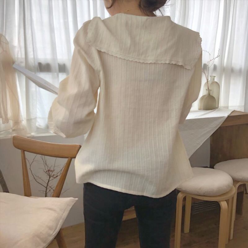 スプリングレースカラージャカード長袖スリーブシャツ トップス ロング 大人ガーリー スウィート キュート カジュアル 春物 ステッチ ICC_レディース3651097