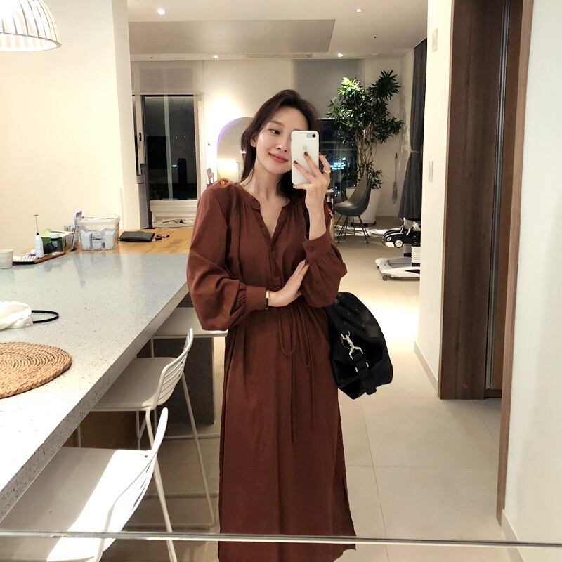 スタンダードスタイルドレス ルーズシャツ スカート ウェスト レトロ フラワーデザイン 左左右右3068480