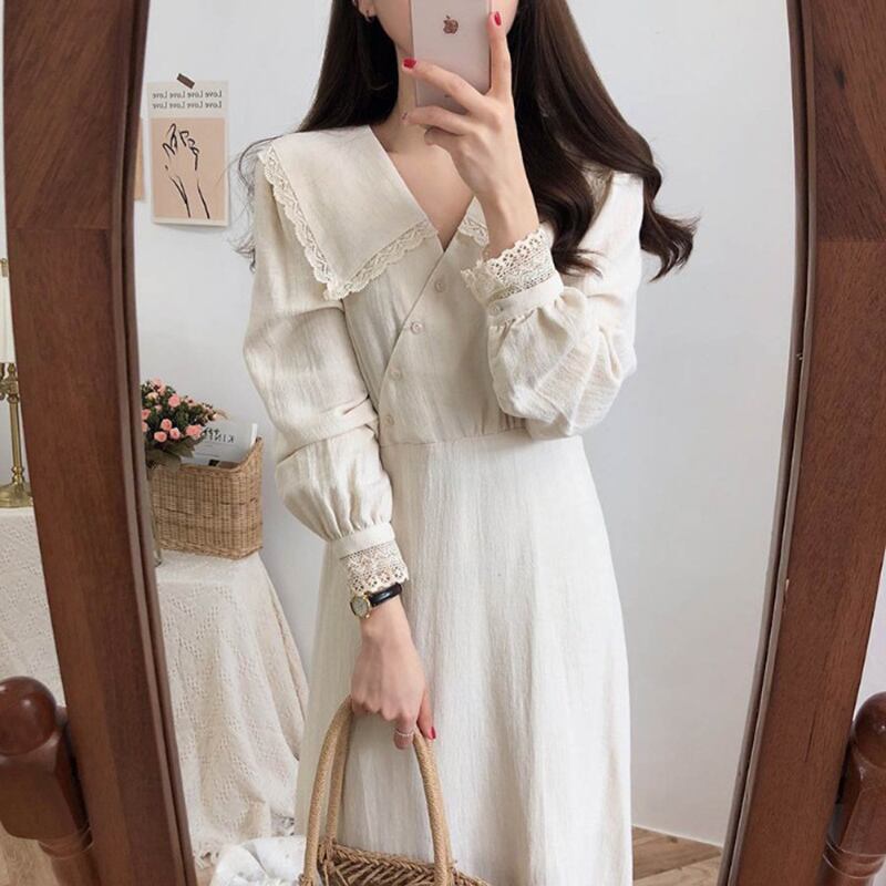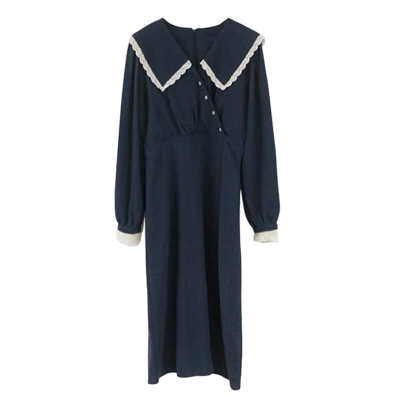 オータムレースVネック薄手カラーロングドレス 秋物 ICC_レディース2316750