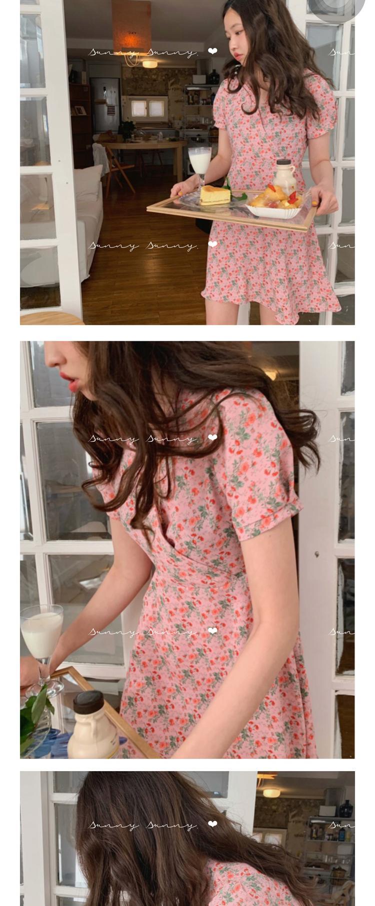 サマースタンダードスカート ウェストブラックプリント柄ドレス レトロ 夏物 左左右右4980535