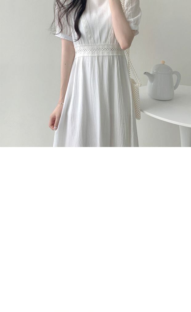 スタンダードスタイルホワイトスカート ロングレースウェストドレス サマー レトロ 大人ガーリー スウィート キュート カジュアル 夏物 左左右右3941878
