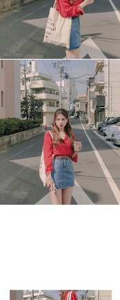 スタンダードオータムシャツ トップス レッド ロング レトロ 秋物 左左右右6568676