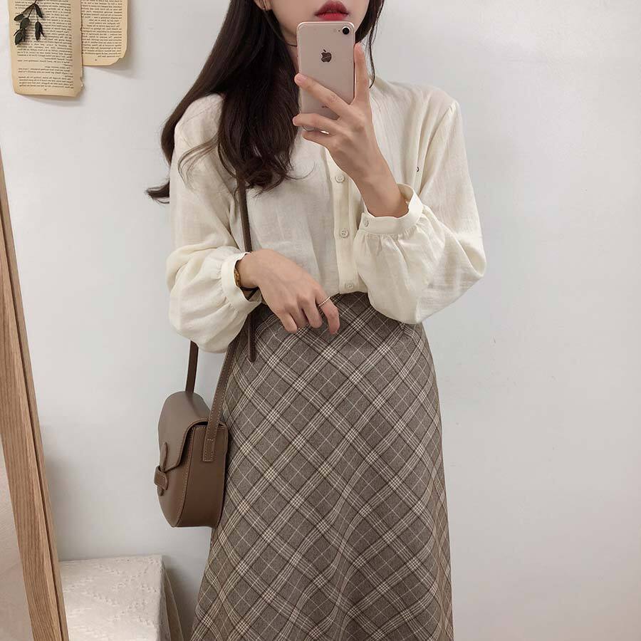 ベージュホワイトシャツ スタンダード長袖スリーブカラー ロング レトロ 左左右右5612304