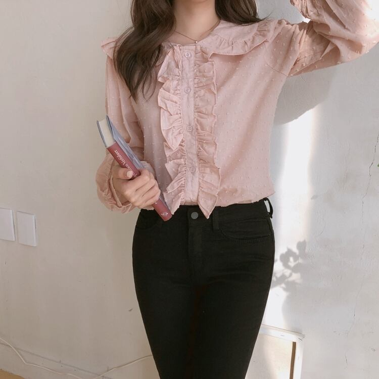 レトロな春と秋のシックなシャツの女性の妖精ファン甘いラペルシャツ非常に妖精の学生シャツ 大人ガーリー スウィート キュート カジュアル スプリング 春物 オータム 秋物 左左右右_复古定制5425238