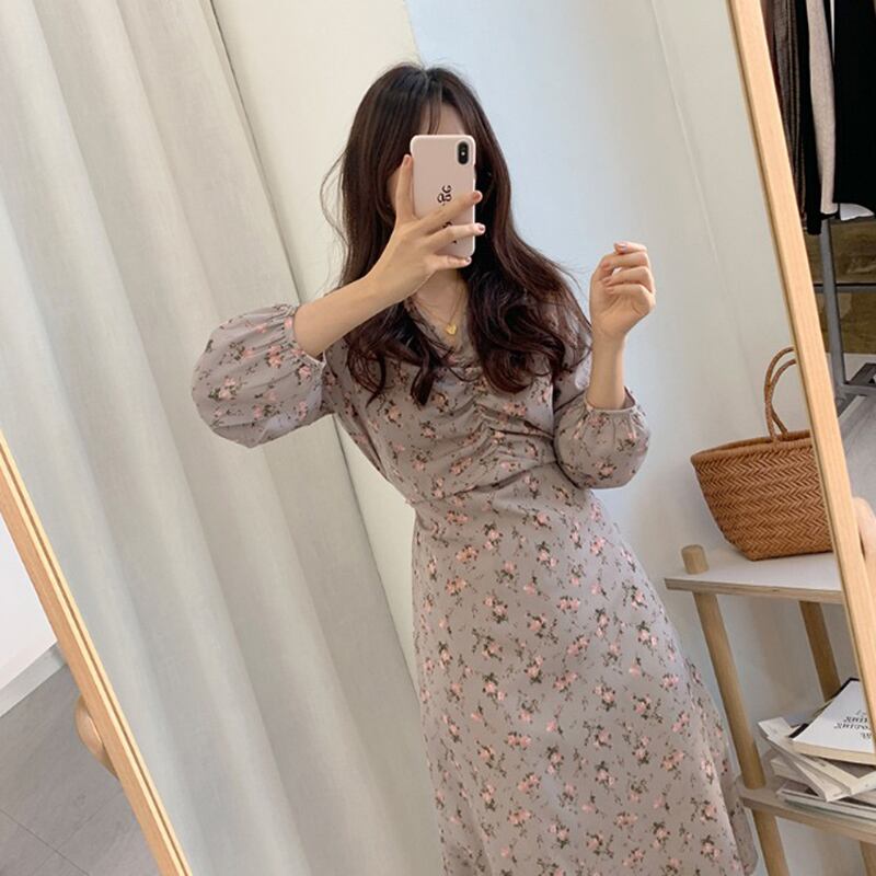 スプリングフローラルVネックウェストドレス ロング 春物 花柄 ICC_レディース6595189