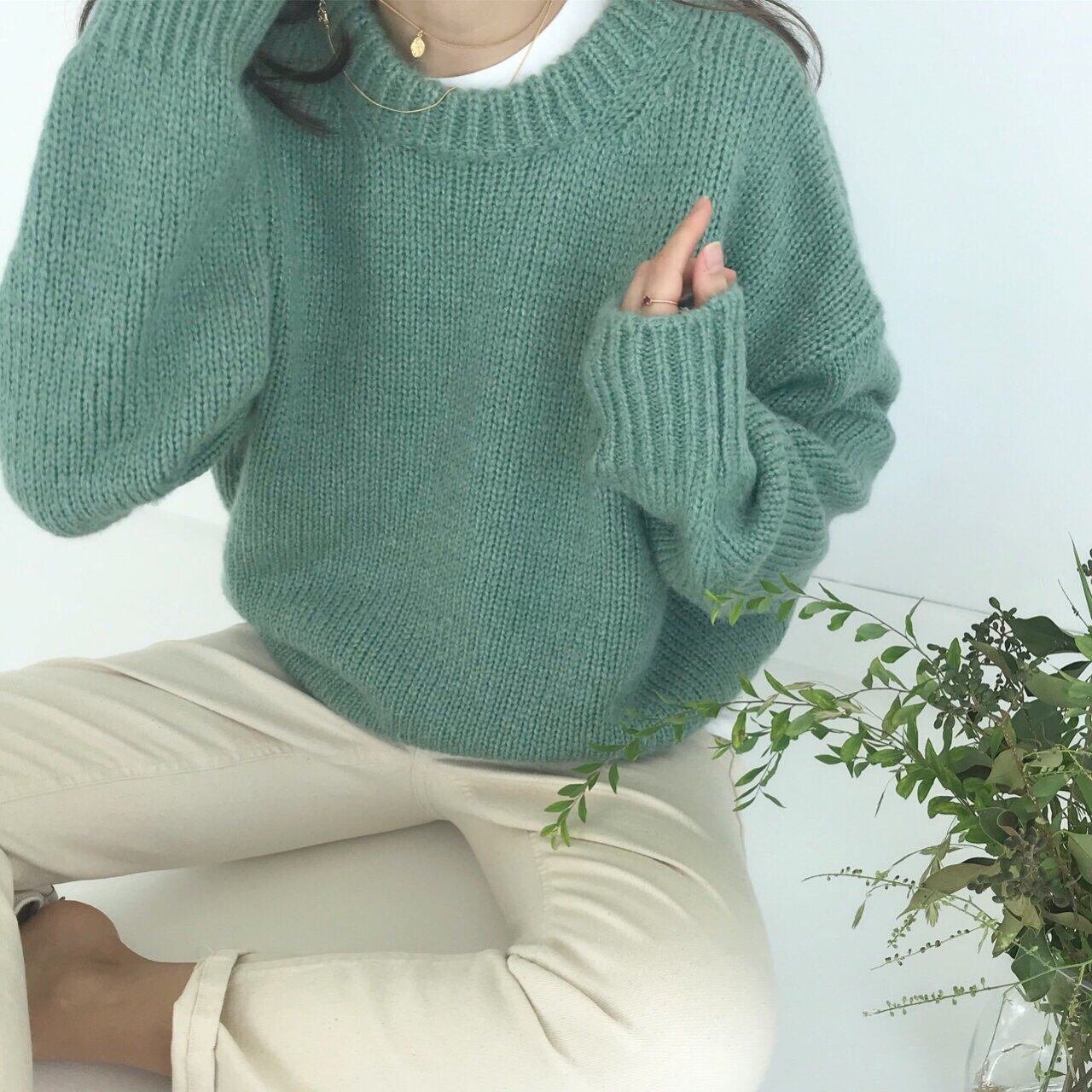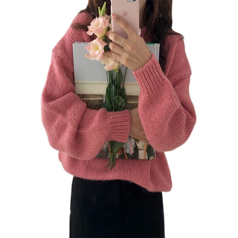 オータムカラーカジュアルルーズプルオーバー シャツ レッドセーター スタンダードスタイル レトロ 秋物 ICC_レディース7778429
