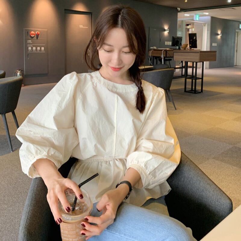 ラウンドネックソリッド カラーウェスト長袖スリーブシャツ レディース ロング Oネック ソリッドカラー ICC_レディース1592985