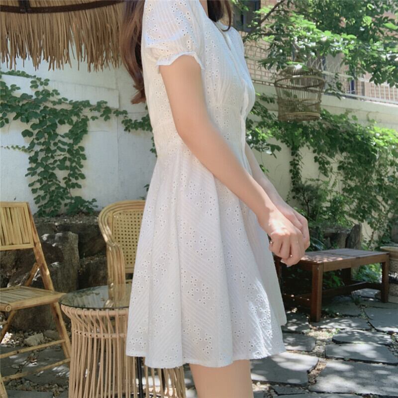サマースタンダードホワイトスカート ロングウェストドレス レトロ 夏物 左左右右4010354