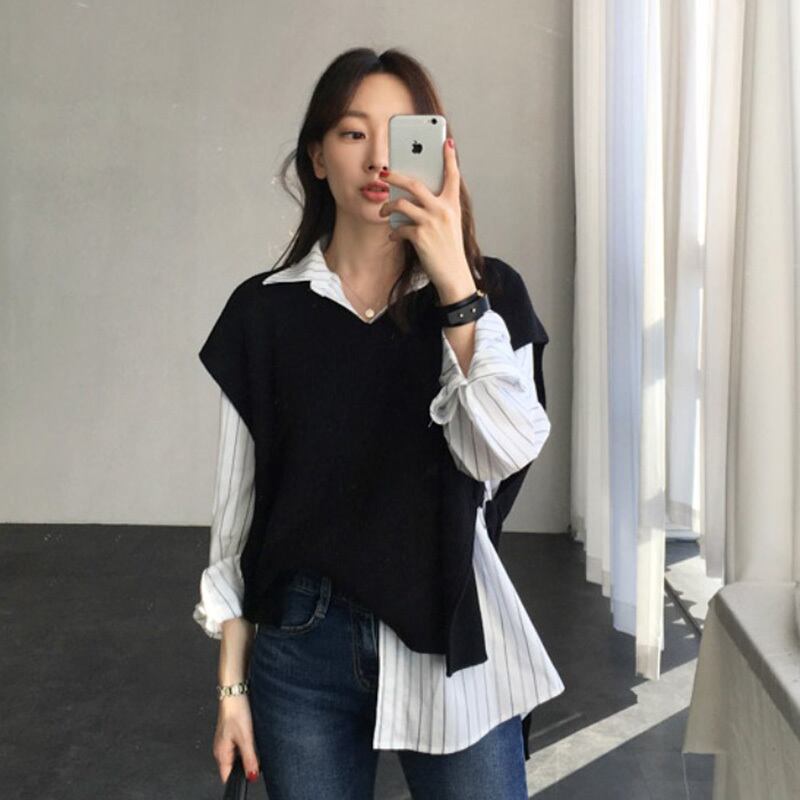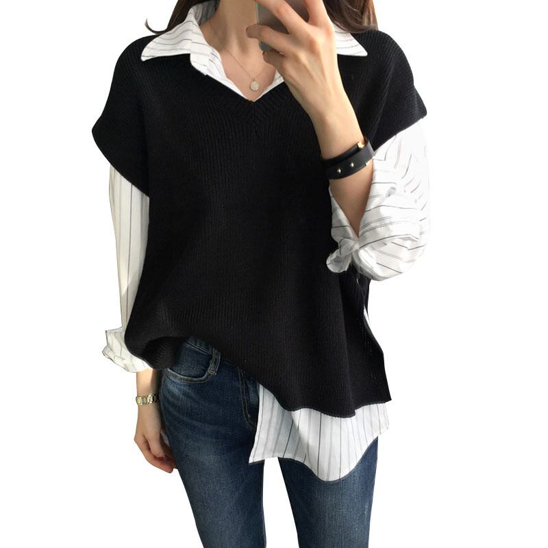 オータムウィンターストライプシャツ ルーズニットセーター 秋物 冬物 ICC_レディース4662210