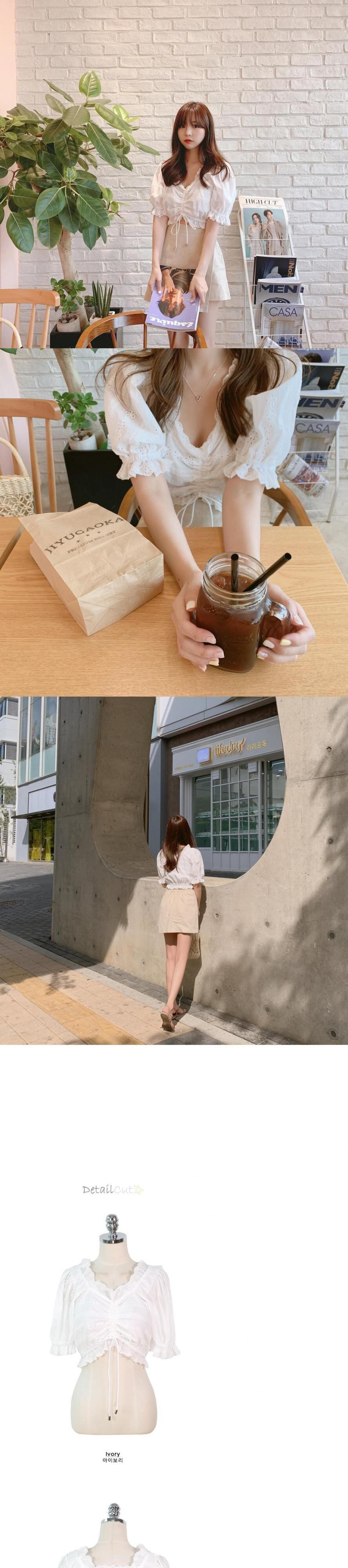 スタンダードホワイトトップス 刺繍Flowerデザイン プリーツショートVネックシャツ レトロ 大人ガーリー スウィート キュート カジュアル フラワーデザイン 左左右右8047140