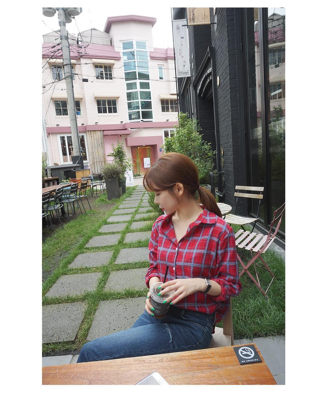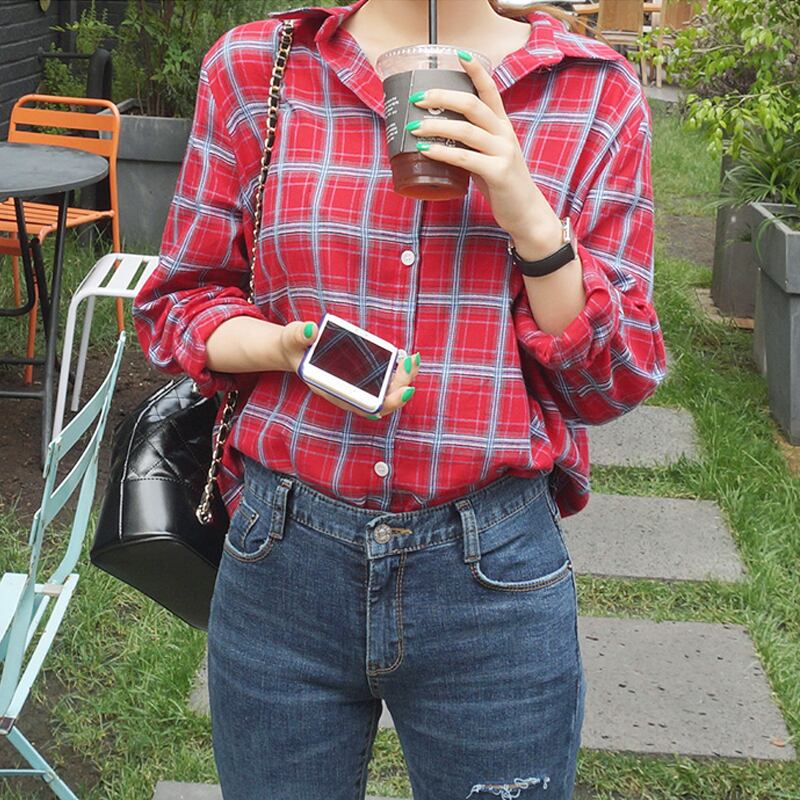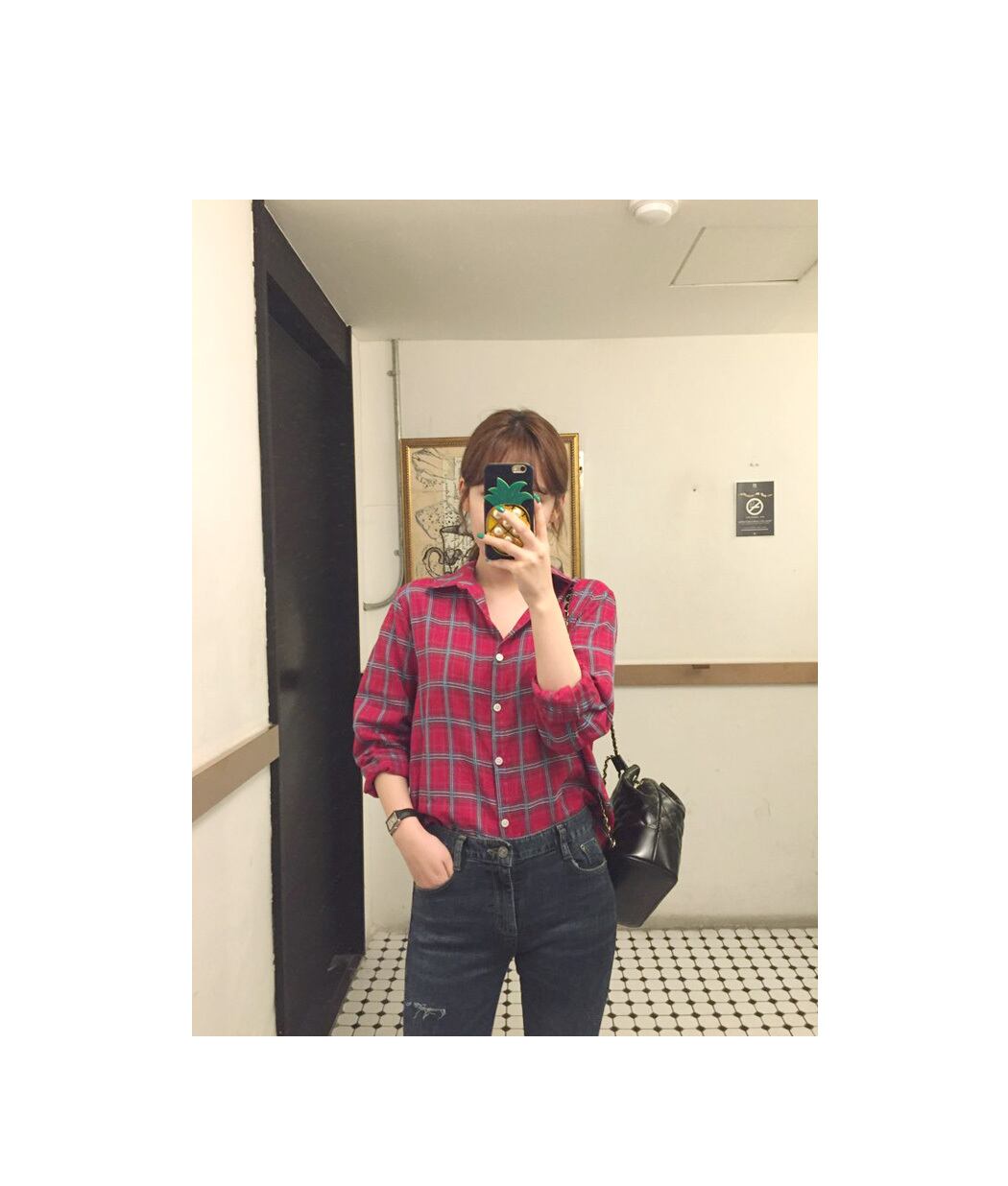 スプリングスタンダードシャツ ルーズレッド格子柄 レトロ 春物 左左右右_复古定制0801392