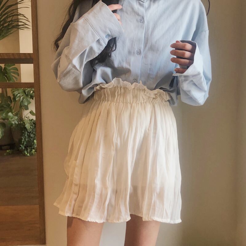 2019レトロシック香港風味ワイルドプリーツスカートファッションショートスカートホワイトエイン学生ハイウエストスカート ハイウェスト 左左右右_复古定制6364495