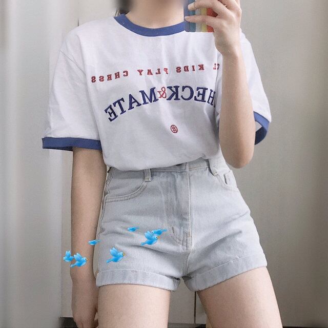 サマールーズカラーTシャツ 半袖スリーブトップス レディース ショート レッド ハーフスリーブ 刺繍 夏物 ICC_レディース4627417