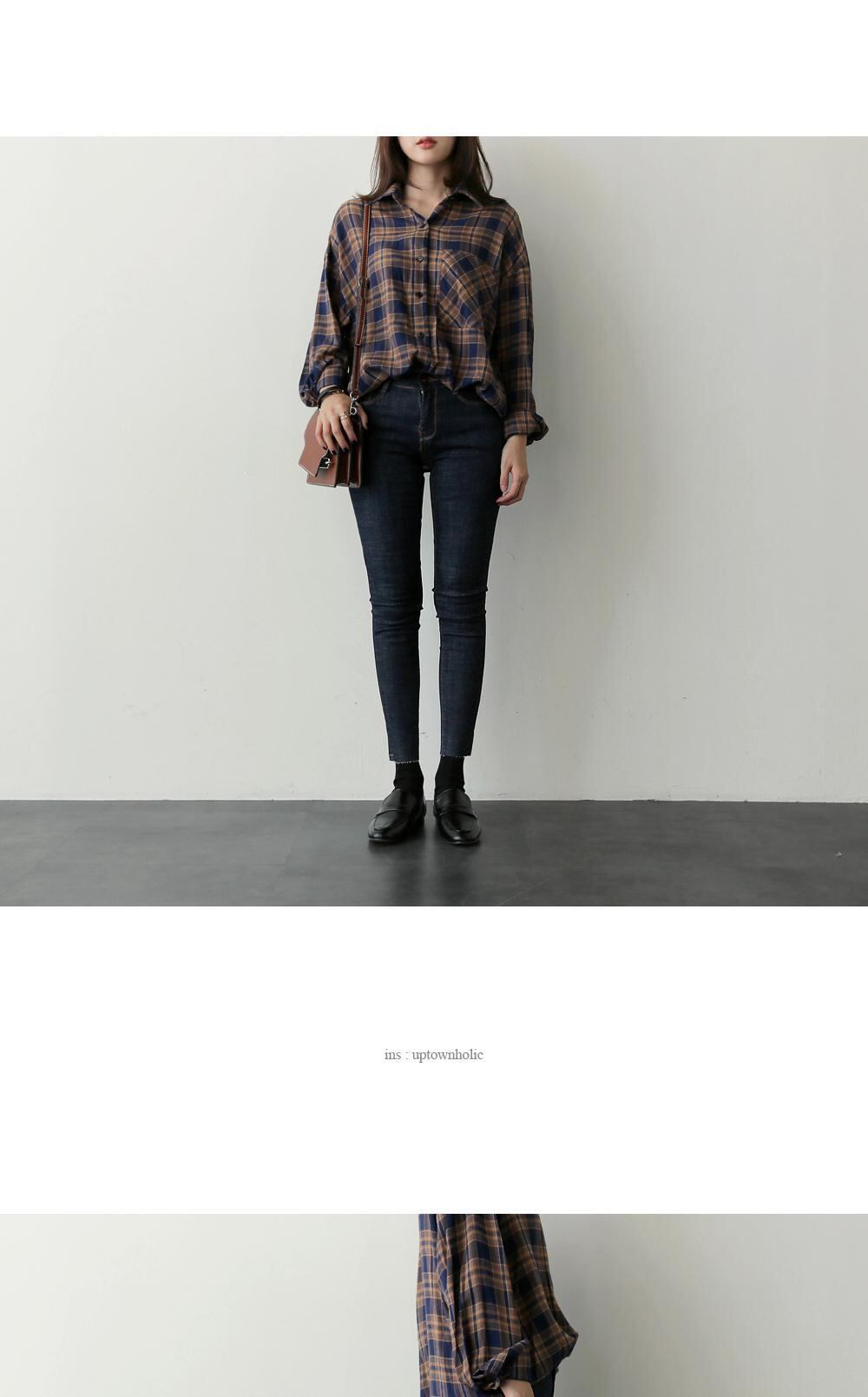 スプリングスタンダードトップス シャツ ロング薄手格子柄 レトロ 春物 左左右右6605528
