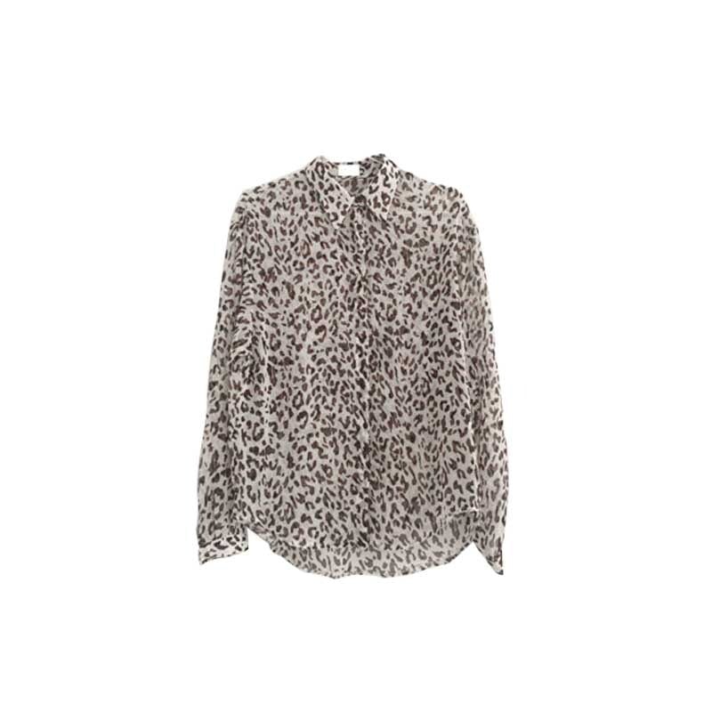 スタンダードレオパードプリント柄シフォンシャツ レッド レトロ 左左右右8109961