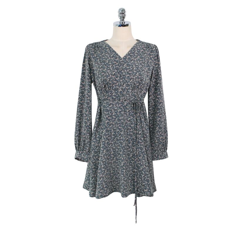 スプリングスタンダードスカート ウェストロングフローラルシフォンドレス レトロ 大人ガーリー スウィート キュート カジュアル 春物 花柄 左左右右9852290