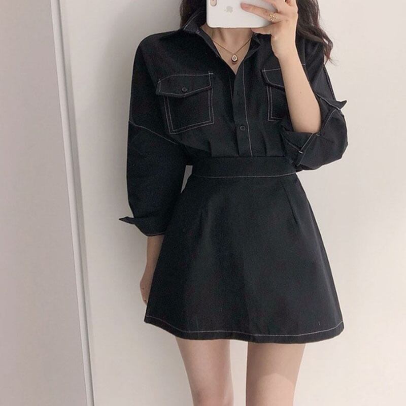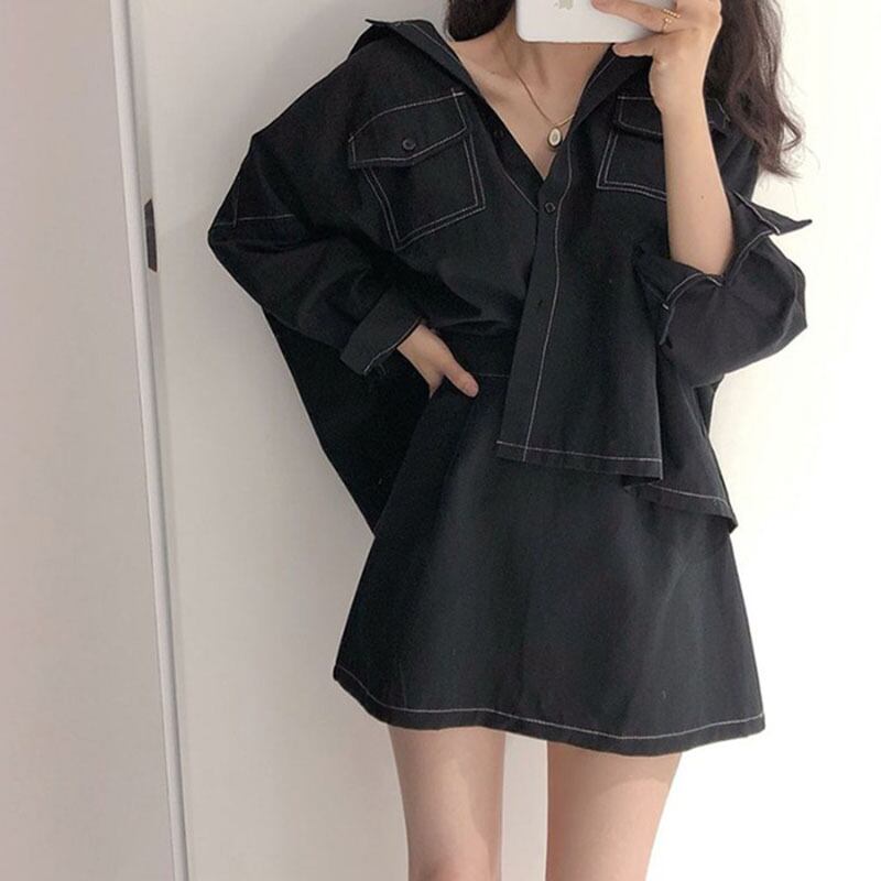 ルーズ長袖スリーブシャツ ジャケット ハイウェストウェストスカート オータム ロング 秋物 ICC_レディース2650634
