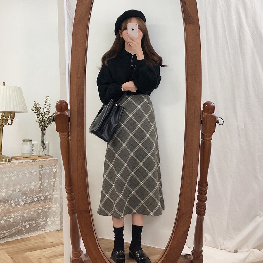 スカート オータムウィンターレディースベルベットハイウェストウェストスタンダード レトロ 秋物 冬物 左左右右5481948