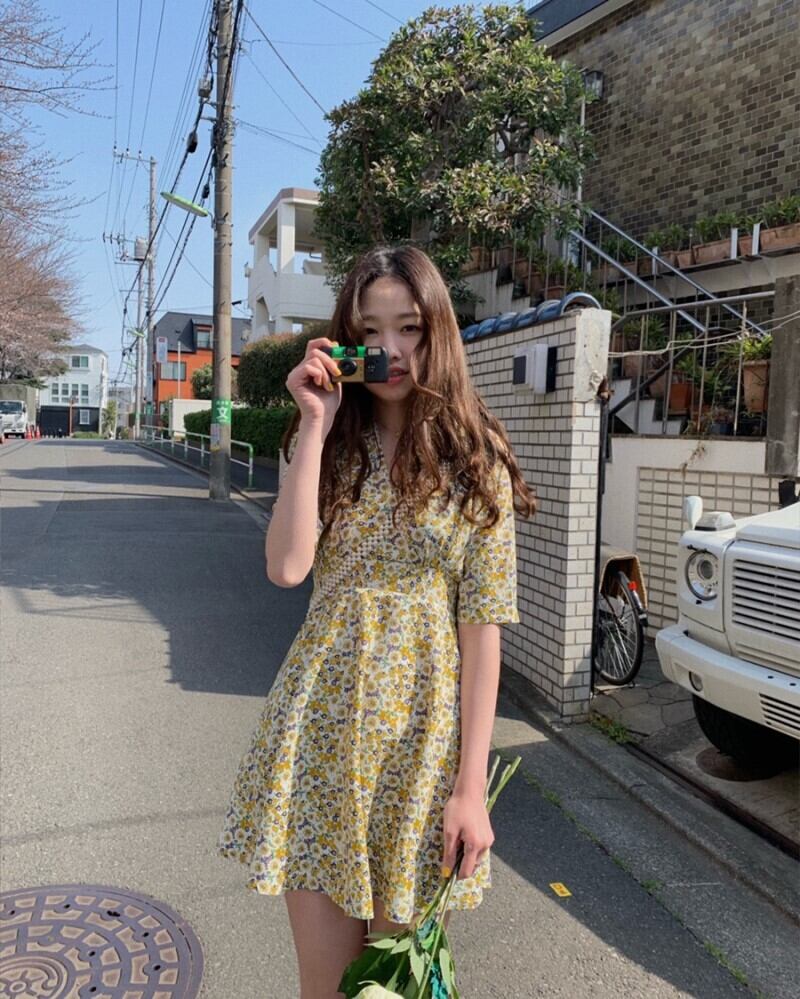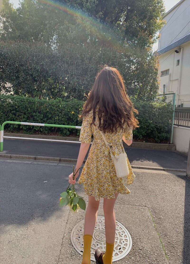 サマースカート ウェストAラインフローラルVネックスリーブシフォンドレス 夏物 花柄 フラワーデザイン 左左右右3714920