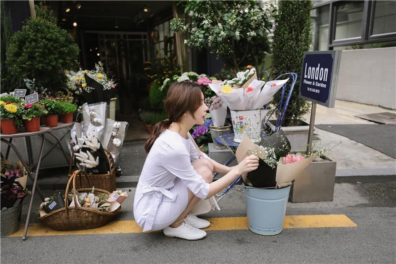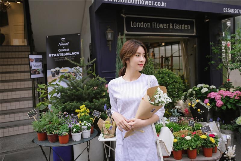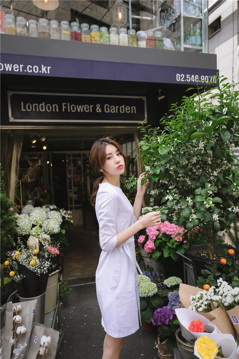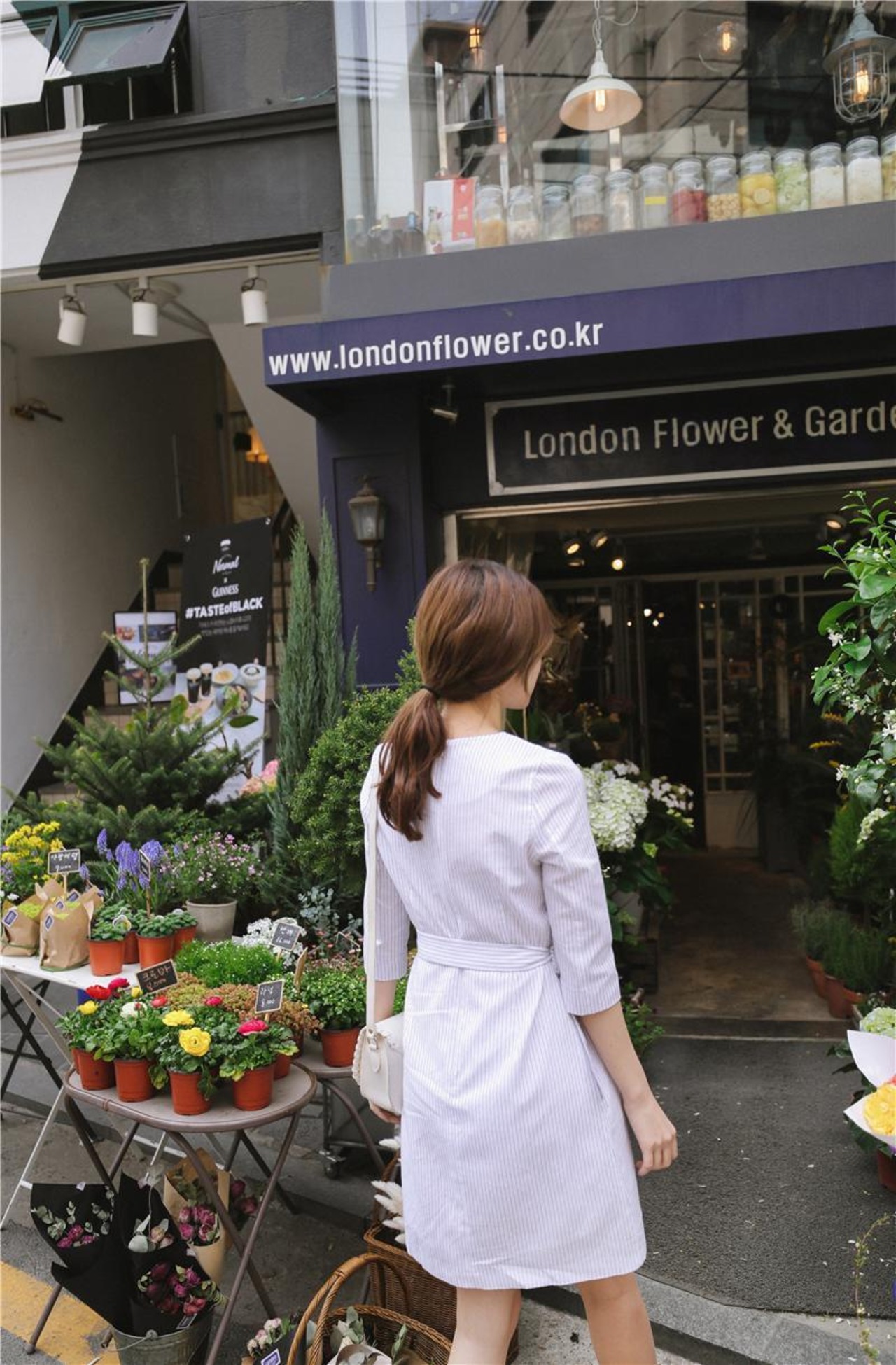 夏の香港の風味レトロシックなベルフラワースカート気質ウエスト痩身不規則な縞模様のドレス潮 サマー 夏物 ストライプ フラワーデザイン 左左右右_复古定制1242439