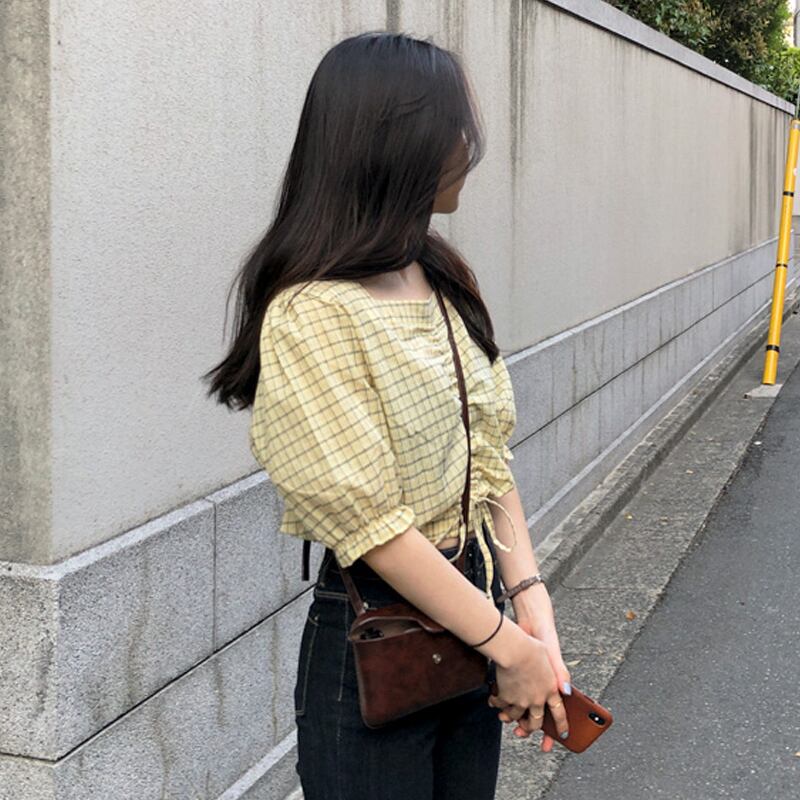 2019夏の小さな新鮮なレトロデザインセンスタイドニッチタイド甘いショートチェックシャツの女性 大人ガーリー スウィート キュート カジュアル サマー 夏物 左左右右_复古定制1637748