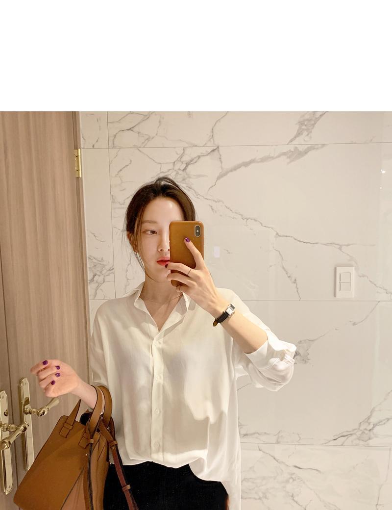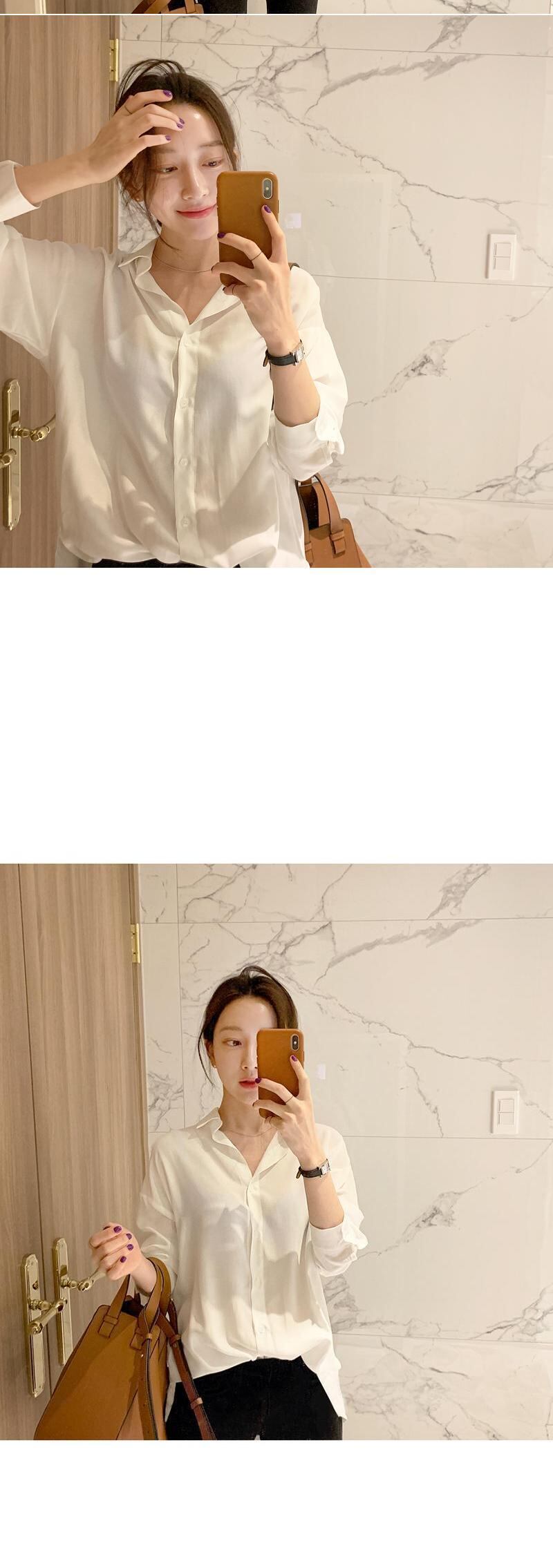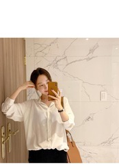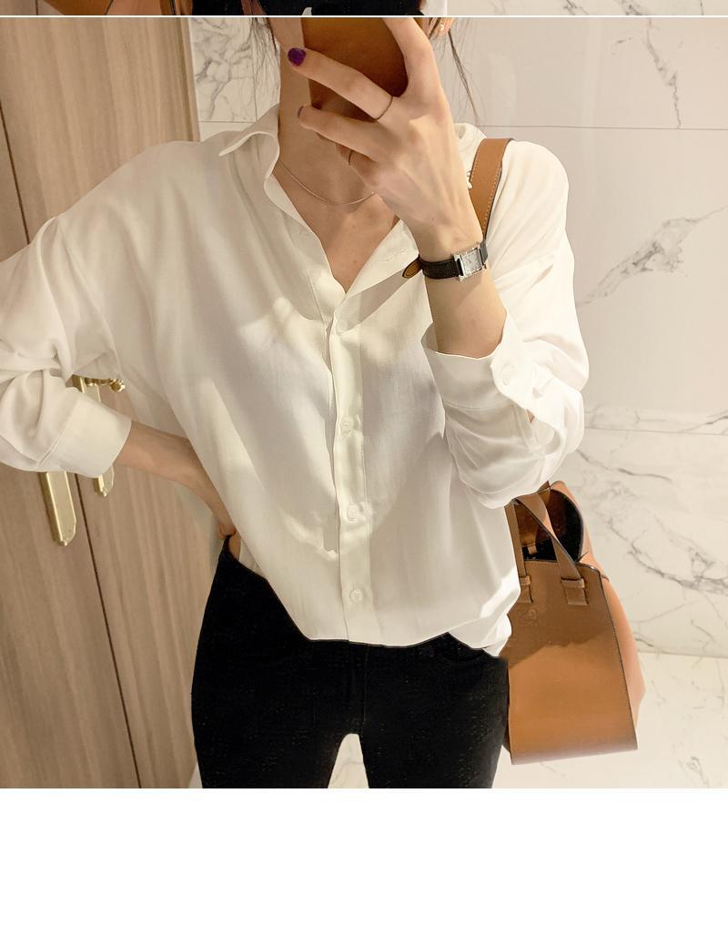 スプリングオータムスタンダードスタイルブラウス ホワイトシャツ レトロ 春物 秋物 左左右右5265172