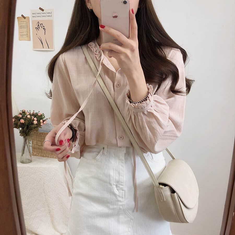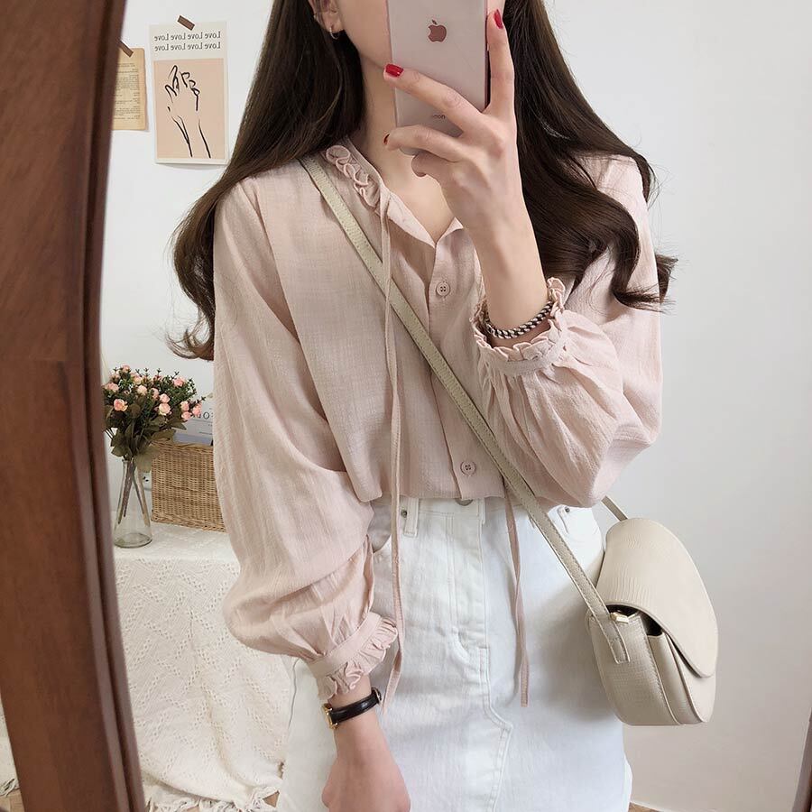 スプリングスタンダードシャツ ルーズトップス レトロ 大人ガーリー スウィート キュート カジュアル 春物 左左右右3406164