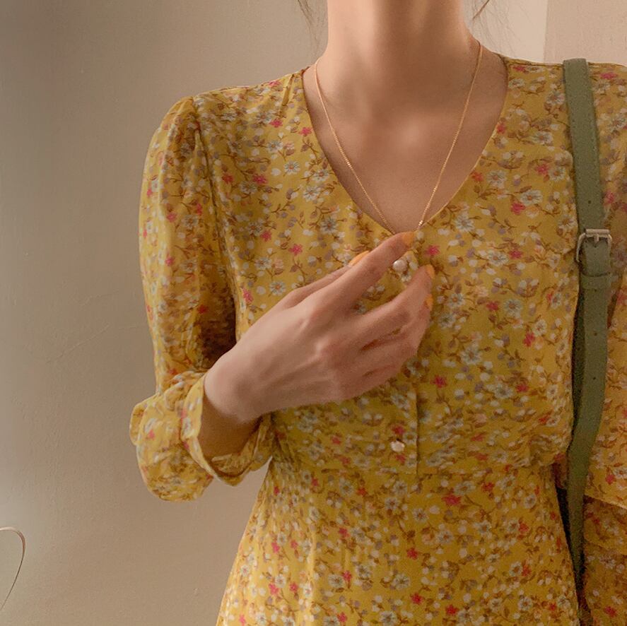 スプリングサマースタンダードフローラルスカート ハイウェストウェスト薄手ショートシフォンドレス レトロ 大人ガーリー スウィート キュート カジュアル 春物 夏物 花柄 ICC_レディース5472955