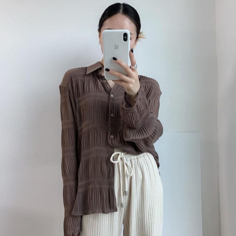 ルーズプリーツ薄手長袖スリーブシャツ ロング ICC_レディース3960216
