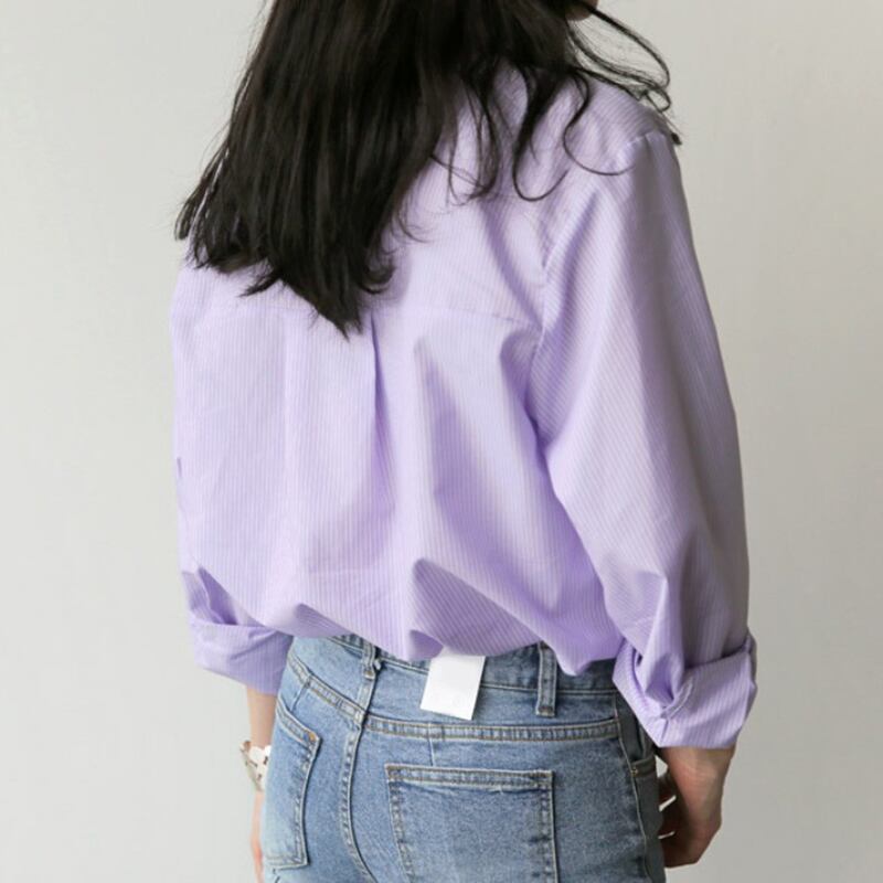 スプリングシャツ スタンダードソリッド カラー ロング レトロ 春物 ソリッドカラー パープル ICC_レディース9625759