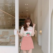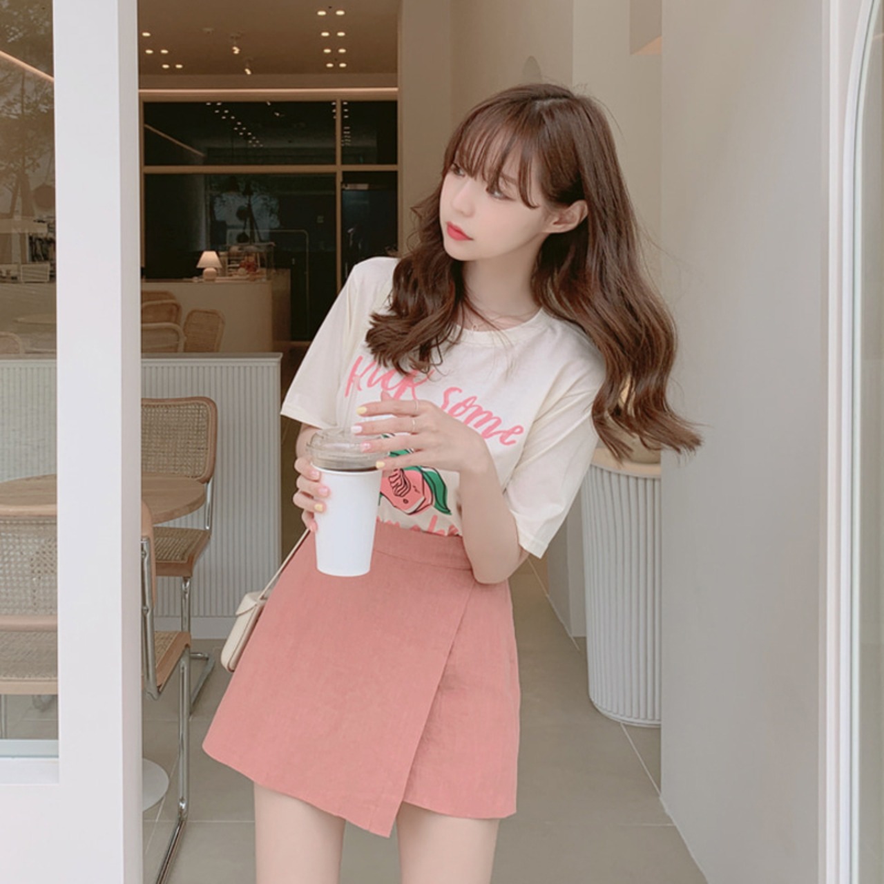 スタンダードセット Tシャツ ハイウェストウェスト薄手ショートスカート レトロ 左左右右1644042