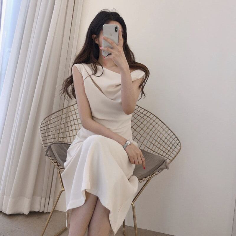 カラーストラップレスドレス サマーウェストノースリーブスカート スリムロング 夏物 ICC_レディース5800936