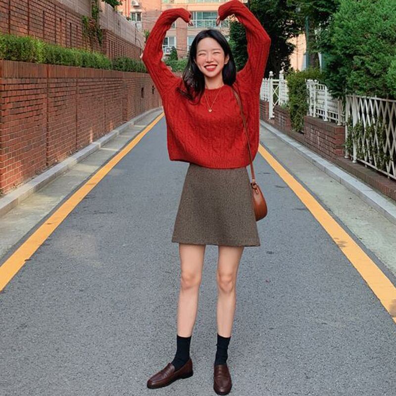 スタンダードオータムウィンタースタイルショートスカート レトロ 秋物 冬物 左左右右4243415