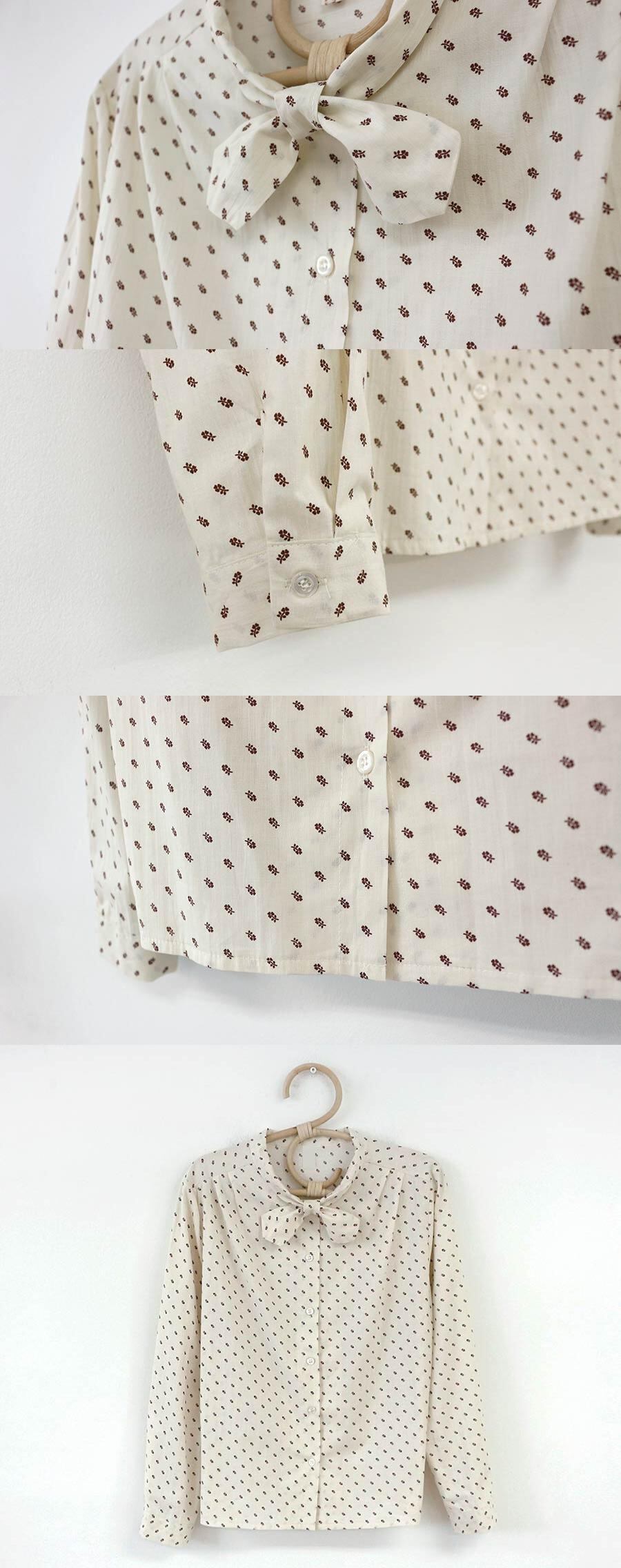 スプリングオータムリボンカラーシャツ 水玉 大人ガーリー スウィート キュート カジュアル 春物 秋物 左左右右6622913