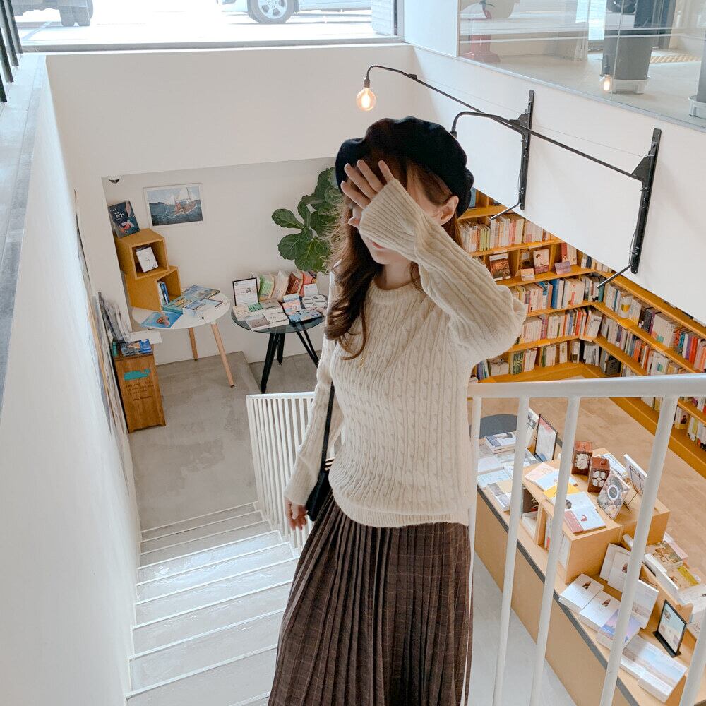 オータムウィンタースタンダードプリーツスカート ロングハイウェストウェスト格子柄 レトロ 秋物 冬物 左左右右0152815