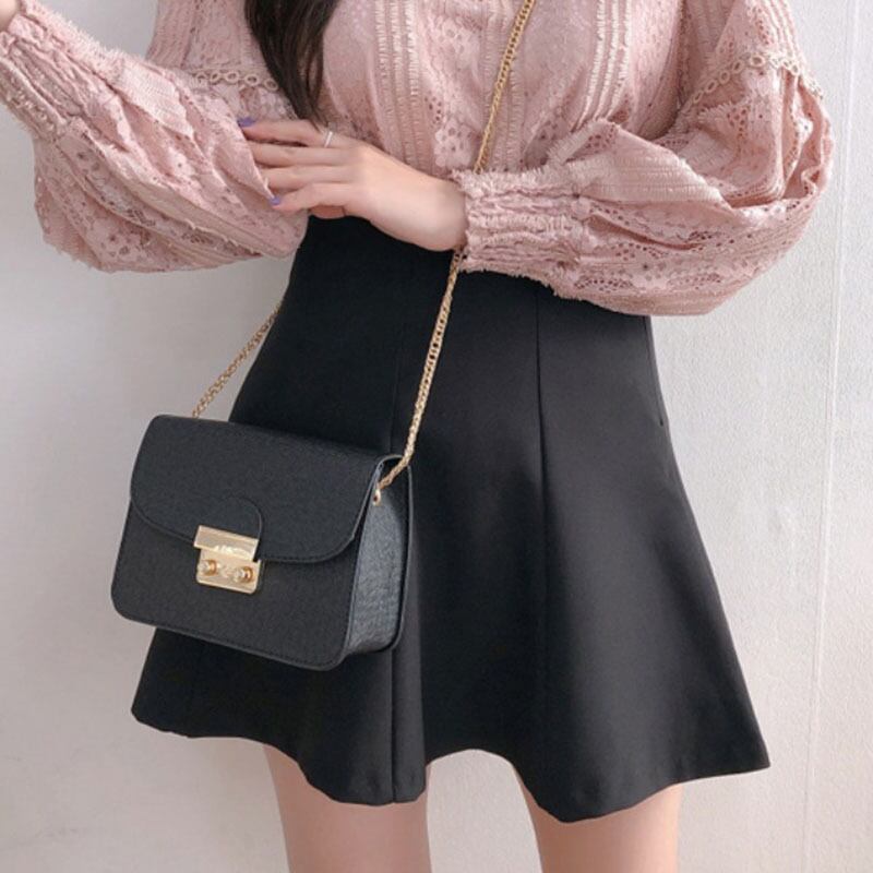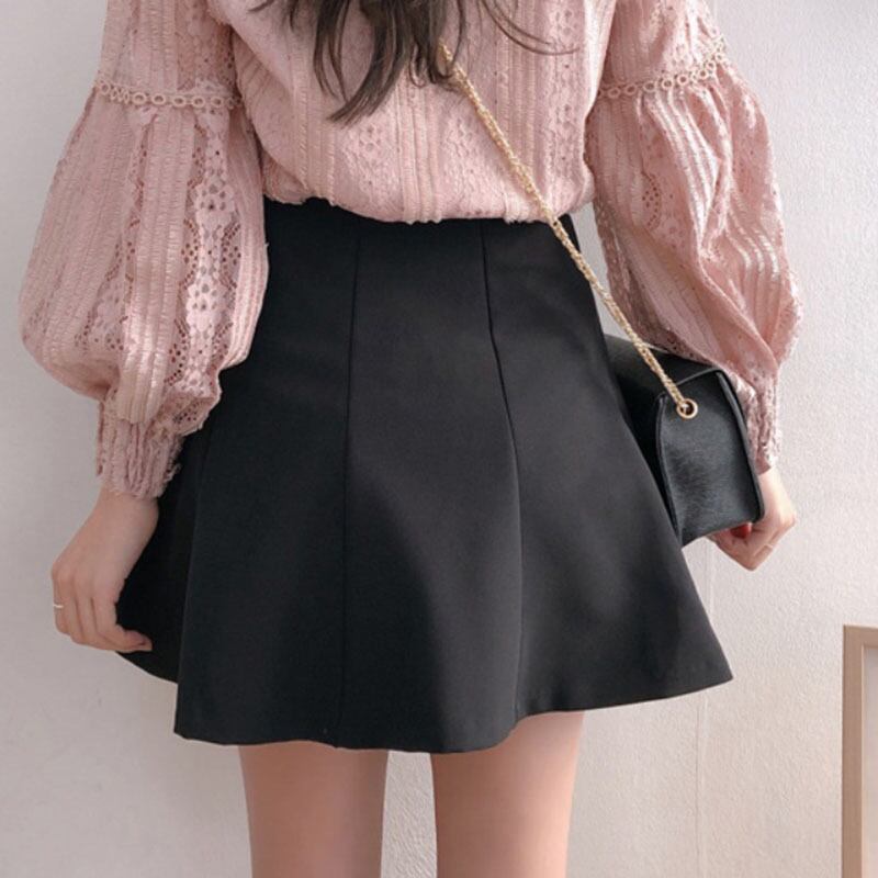 オータムハイウェストウェスト薄手スカート ブラックショート 秋物 ICC_レディース6328516